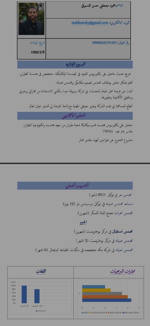 Seeking a Technical Support/ Customer Service position in Saudi Arabia With 1 year experience in information systems available to start immediately I have strong communication, problem - solving, and teamwork skills, and am proficient in Microsoft Office and other software (English level B1) All necessary information is included in my CV contact me to send it to you. Thank you for your time