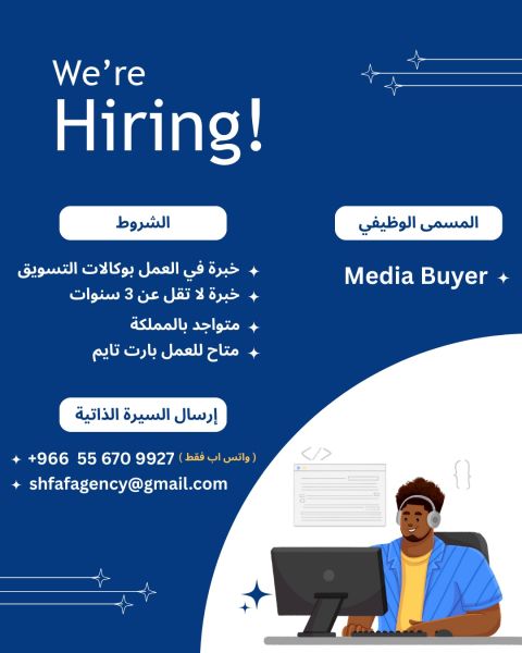 مطلوب للعمل من داخل المملكة (ميديا باير) عمل عن بعد تواصل واتساب وايميل