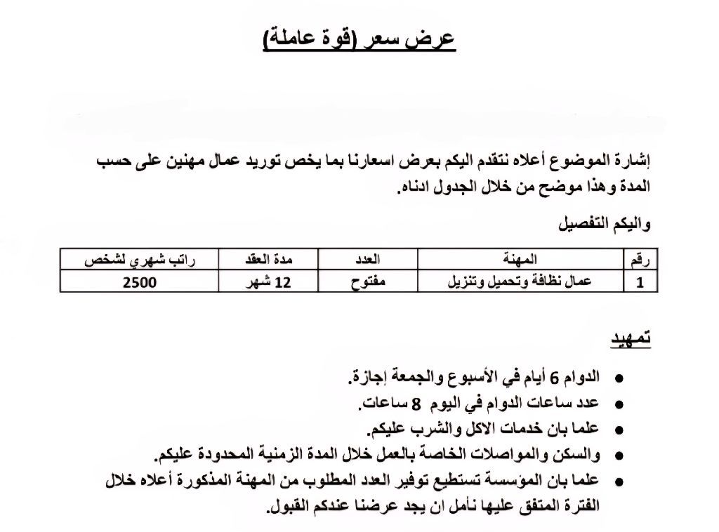 يتوفر لدينا عمال نظافة وتحميل وتنزيل على نظام أجير عدد مفتوح