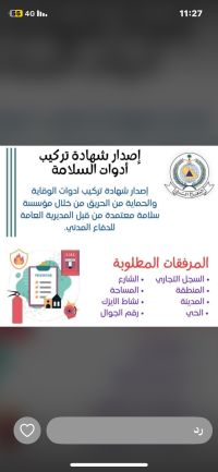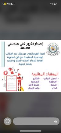 رخص الدفاع المدني والبلدية عقود صيانة وعقود نظافة وتقارير ملائمة وفنيه وعقود إيجار شهادة أدوات سلامة توريد وتركيب وصيانة اجهزة الاطفاء والانذار صيانة طفايات الحريق الدوريه