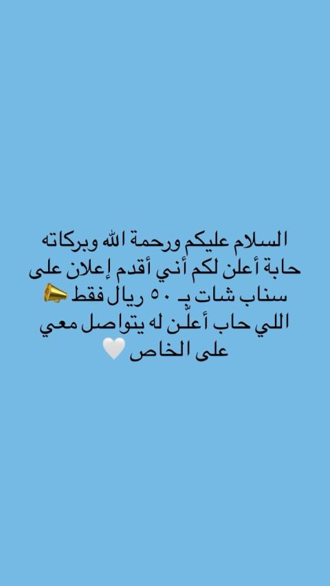 حابة اعلن لكم أني أقدم اعلان على سناب شات ب 50 ريال فقط اللي حاب اعلن له يتواصل معي على الخاص
