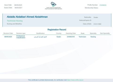 تقني تمريض خبرة طوارئ مع ترخيص من الهيئة SCFHS ساري، ابحث عن وظيفة، نقل كفالة