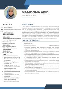 A highly skilled and patient - focused registered nurse with 6 years of experience in providing exceptional healthcare services. Proficient in assessing patient needs, administering treatments, and delivering high quality, evidence based care. Adept at collaborating with interdisciplinary teams to ensure optimal patient outcomes. Known for empathy, attention to detail, and excellent communication