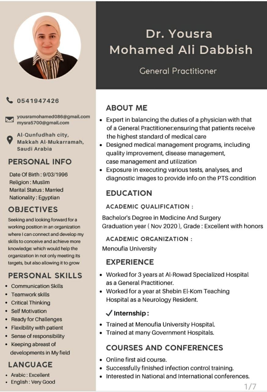 طبيبه عام مصرية مقيمة في مدينة القنفذة ترخيص الهيئة ساري، خبرة 3 سنوات، وخبرة طوارئ