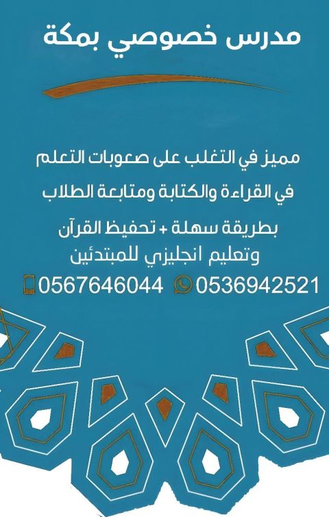 مدرس خصوصي في مكة المكرمة تعليم قراءة وكتابة وصعوبات تعليم وحفظ القرآن الكريم وانجليزي للمبتدئين