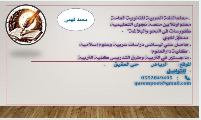 معلم اللغة العربية للثانوية العامة والمرحلة المتوسطة ماجستير في التربية وطرق التدريس ليسانس دراسات عربية وعلوم اسلامية ومدقق لغوي مؤلف كتاب "النحو المبسط" لتيسير الإعراب بطريقة الخرائط الذهنية