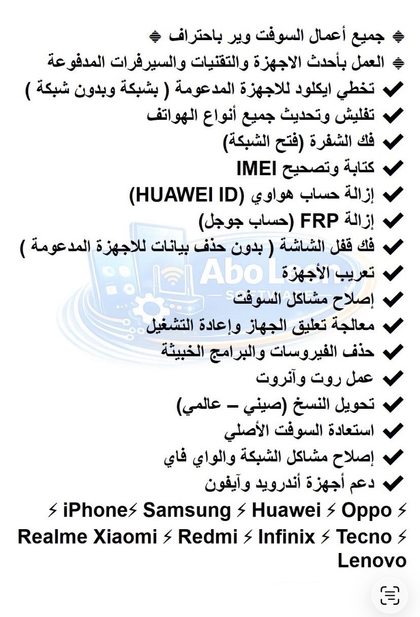 جميع أعمال السوفتوير باحتراف العمل بأحدث الاجهزة والتقنيات والسيرفرات المدفوعة للحفاظ علي جهاز العميل