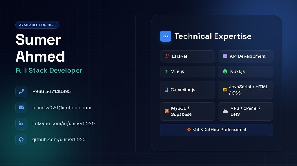 A full stack developer with strong experience in websites development and APIs services and integrations using Laravel, vue, nuxt and other technologies