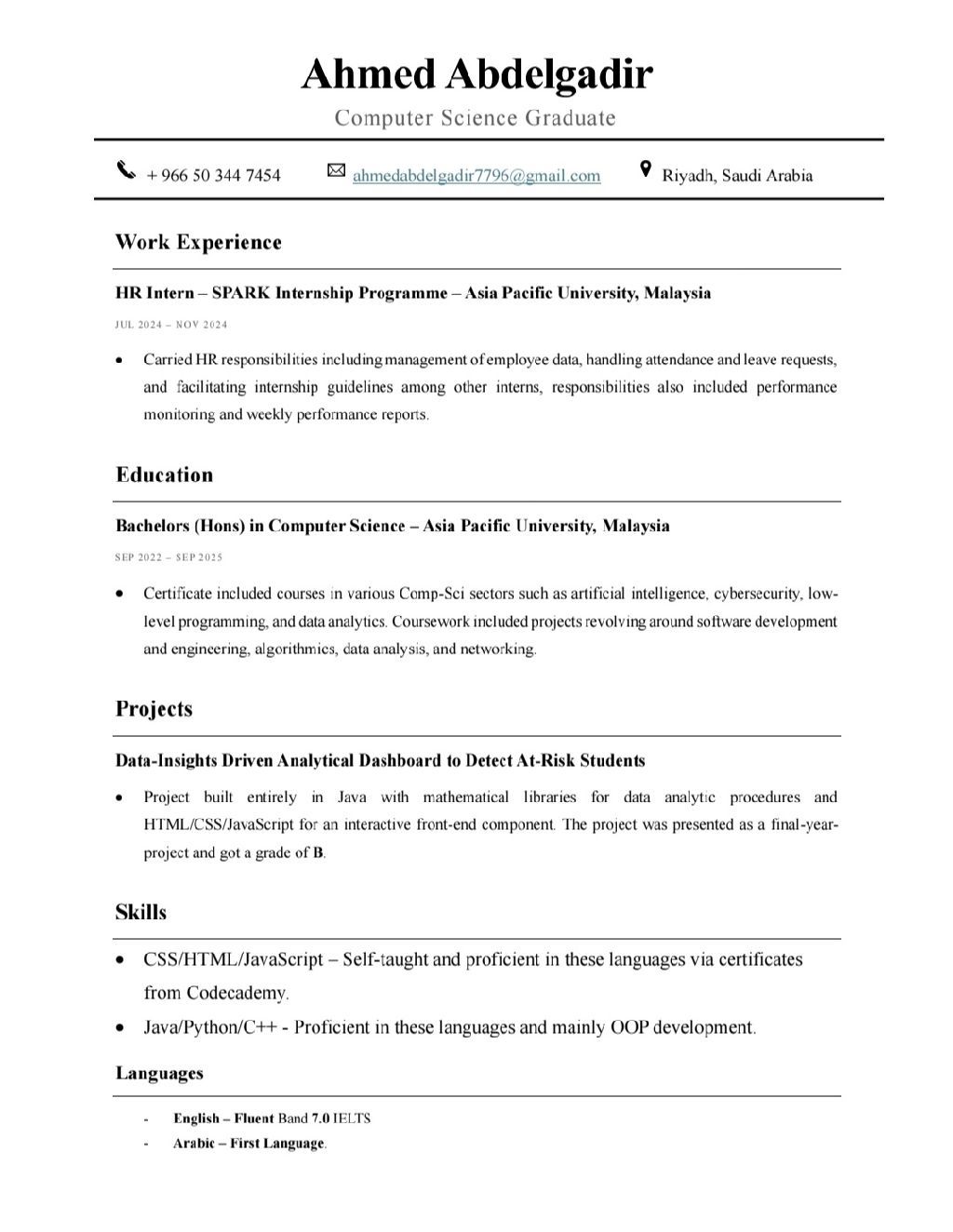 Computer Science Graduate with a strong foundation in Java, C and Python. Proven ability to develop clean code and automate workflows using Bash and PowerShell within Linux (Kali/ Ubuntu) environments. Passionate about transitioning into DevSecOps, I combine software development skills with a security - first mindset and a commitment to mastering new frameworks and deployment technologie
