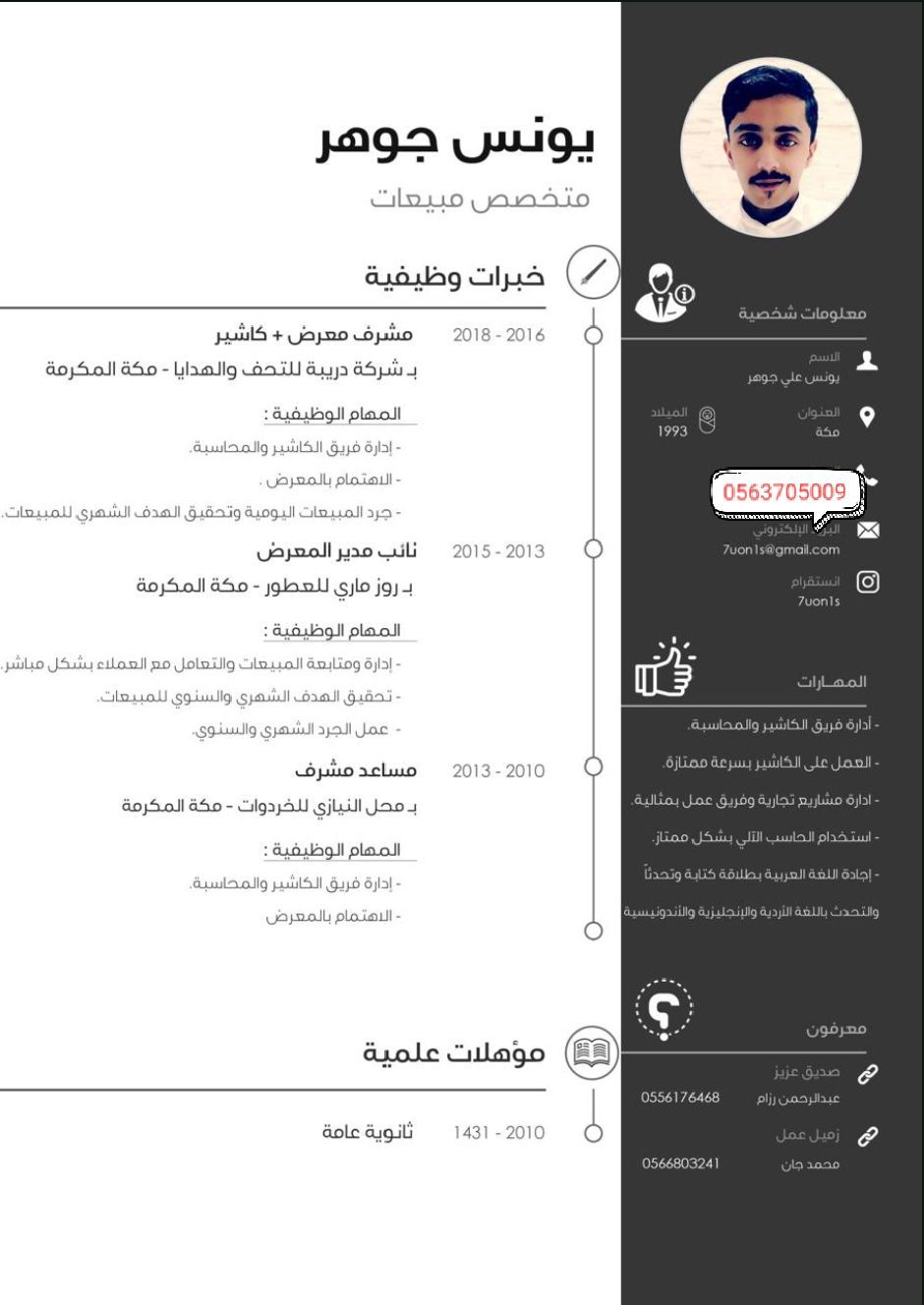 اسمي. يونس على جوهر & ابحث عن وظيفة في مجال المبيعات أو مجال ادارة عمال لدي خبرة كافية في مجال منها ادارة المعرض أو الفرع من ادخال المنتجات وفرزها وجردها شهرا وسنويا وتحقيق الهدف الشهري والسنوي