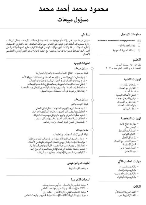 ابحث عن فرصة عمل في مجال المبيعات خبرة خمس سنوات في مجال المبيعات وخبرة ثلاث سنوات في مجال الاستقبال خبرة سنتين في ادخال البيانات