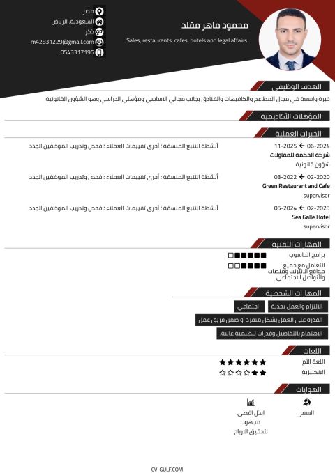 أنا محمد من مصر متواجد حاليا في السعودية والإقامة سارية وقابلة للنقل خبرة بمجال المبيعات أكثر من 8 سنوات وفي مجالات مختلفه أيضا ومتوفر CV به كل خبراتي السابقه