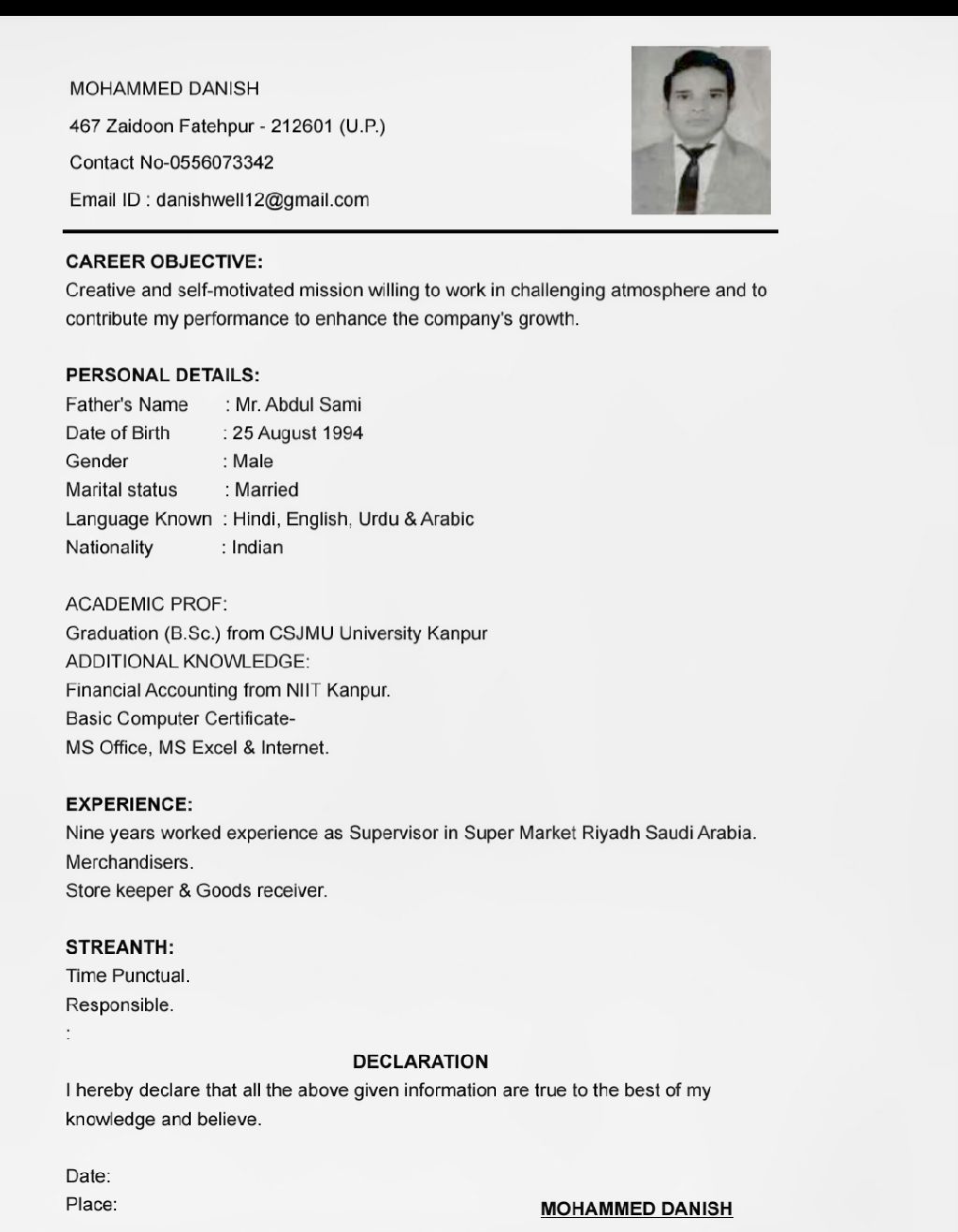 I am from India with 10 years of experience as a Supervisor in a supermarket in Riyadh. I have strong knowledge of supermarket operations, including staff management, inventory control, customer service, and achieving sales targets. I am proficient in computer skills, especially MS Word and MS Excel, for reporting and data management. I speak Arabic, English, and Hindi fluently