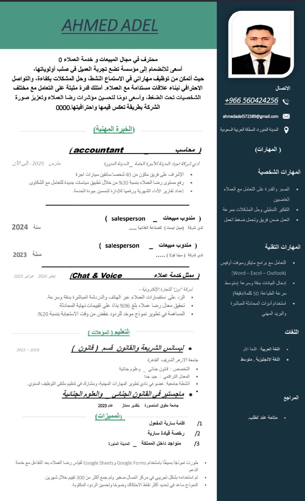 أحمد عمري 24 سنة مصري لدي بعض الخبرات في أكثر من مجال باحث عن وظيفة داخل منطقة المدينة المنورة موجود في المدينة المنورة. لدي اقامة سارية قابلة للنقل) رخصة قيادة سارية. وجميع التفاصيل موضحة ب CV
