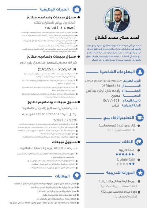 شاب مصري يبحث عمل مناسب خبرة كبيرة في المبيعات والاشراف وادارة فروع في قطاعي المواد الغذائية وكبار شركات بيع الحديد التجاري والتسليح