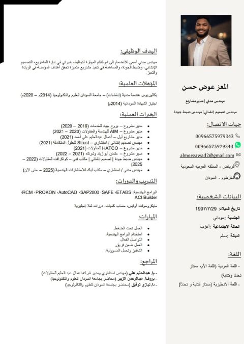 Civil Engineer with over 6 years of experience in project management, structural design, and technical office works. Experienced in delivering major governmental and specialized projects with high quality and schedule compliance. Seeking a career opportunity within an ambitious organization. Contact (WhatsApp/ Call)
