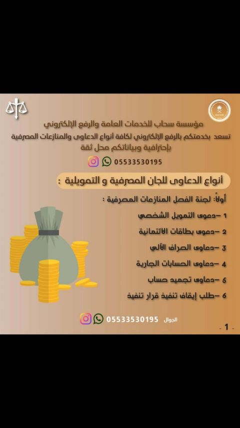 خدمات لجان المنازعات المصرفية وناجز واللجان التأمينية وديوان المظالم والبنك المركزي وجدولة الرواتب للموظفين والمتقاعدين