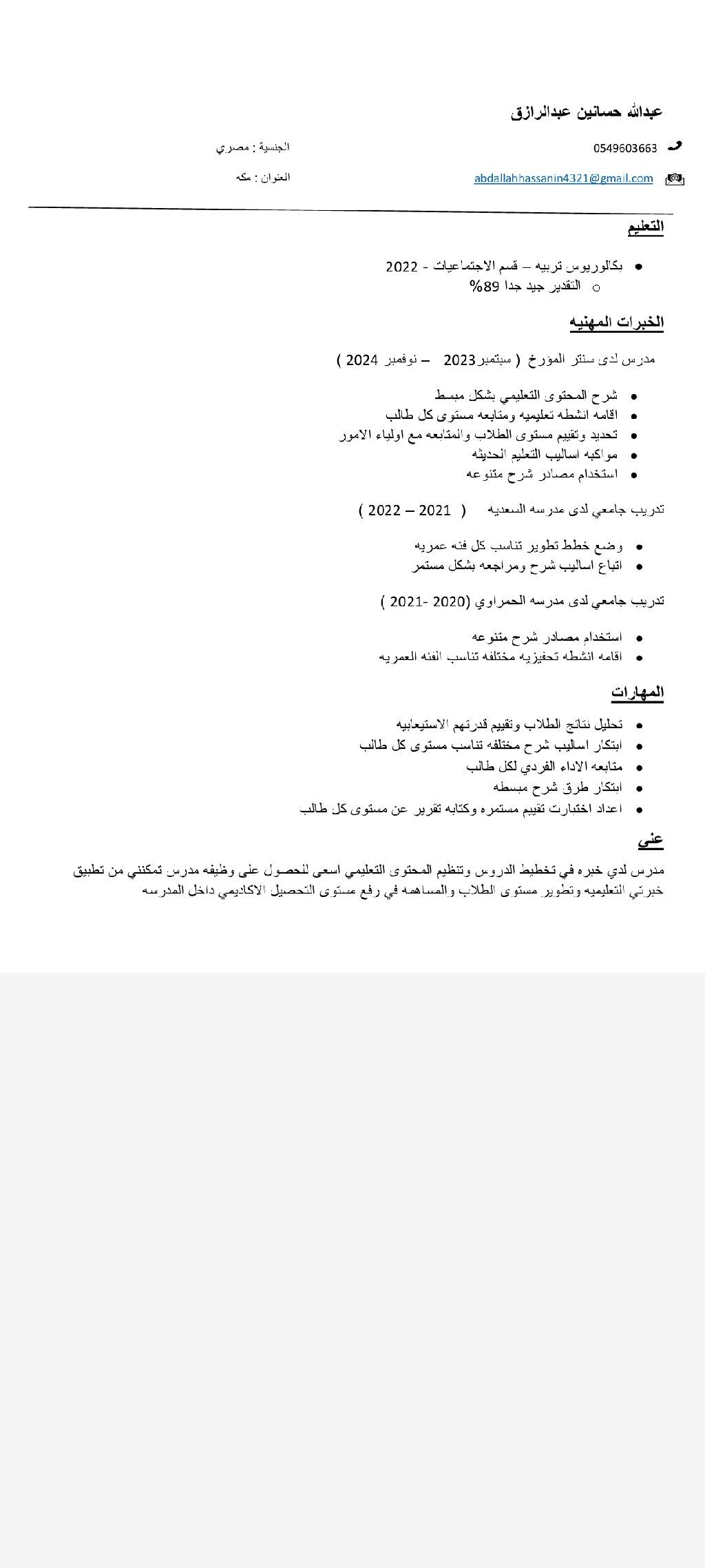 معلم اجتماعيات حاصل على بكالوريوس تربية قسم جغرافيا بتقدير جيد جدا مع مرتبه الشرف خبرة سنتين موجود في مكة وأجيد طرق التعليم الحديثة