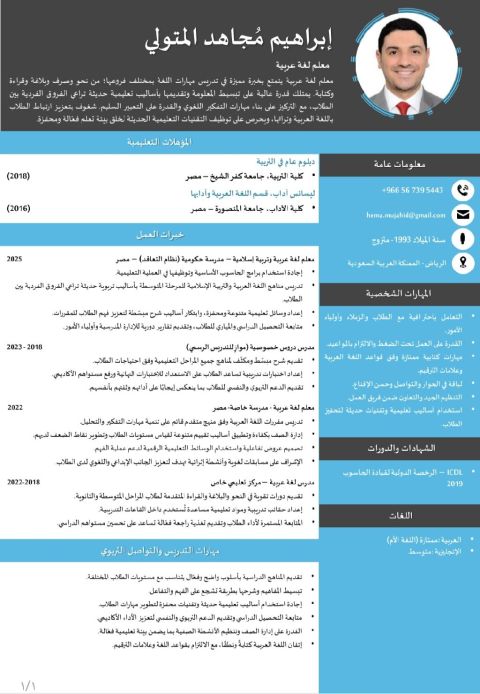 الاسم عبدالرحمن / الجنسية سعودي / المؤهل بكالوريوس في اللغة العربية، من جامعة تبوك، باحث عن عمل في مجالات متنوعة في مختلف المراحل التعليمية، والتدقيق اللغوي والمراجعة للنصوص والمحتوى، والعمل في مجال الاعلام والصحافة، وكتابة المحتوى المتخصص، والعمل في البحث العلمي والنقد الأدبي والفني، وكذلك العمل في دور النشر والمؤسسات الثقافية والحكومية. والتعليم عن بعد على منصات التعليم الالكتروني
