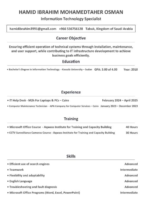سودانية الجنسية، حاصله على ماجستير في الأحياء الدقيقة (Microbiology) لدي خبرة عملية في العمل في مصنع مياه، شركات منتجات طبية (المعقمات، الحقن) وشركة ادوية. أتمتع بخبرة في العمل المخبري، الالتزام باجراءات الجودة، والعمل ضمن فريق، مع الجدية والانضباط وتحمل ضغط العمل. ابحث عن فرصة عمل مناسبة في مجال الأحياء الدقيقة / الجودة / الصناعات الدوائية أو الطبية