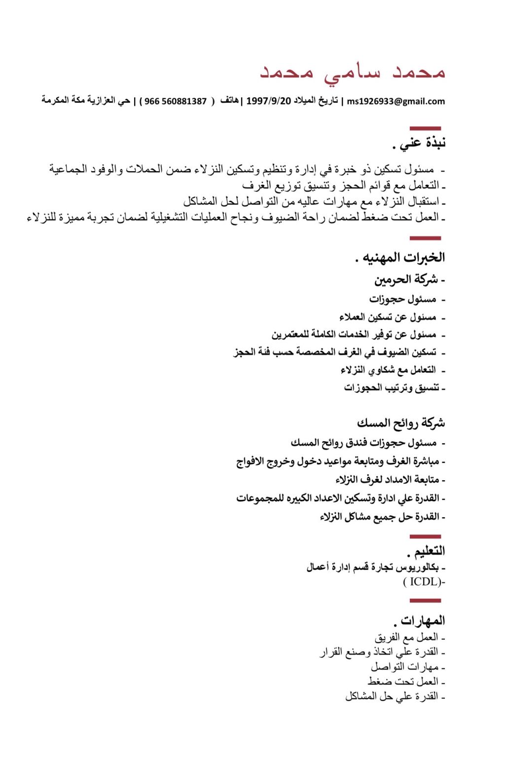 محمد سامي مسؤول حجوزات ومبيعات وتسكين ابحث عن وظيفة مسؤول حجوزات ومبيعات لدي شركة سياحة أو فندق في مكة المكرمة أو المدينة المنورة خبرة عامين في عدة شركات وفنادق في مكة المكرمة مقيم ومتاح للعمل