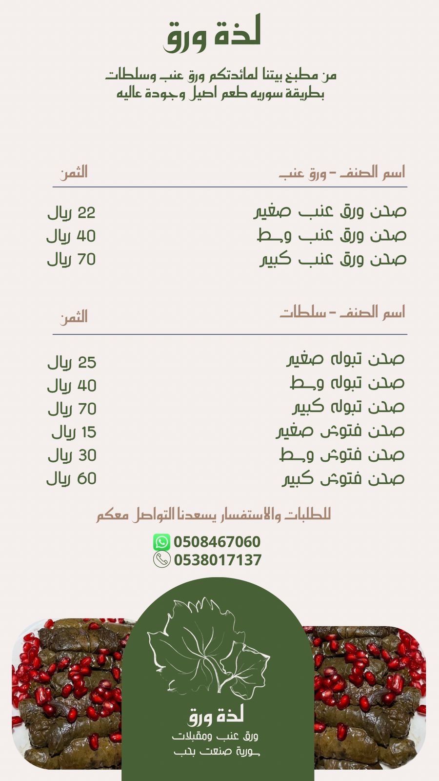 لذة ورق من مطبخ بيتنا لمائدتكم ورق عنب وسلطات محضرة على الطريقة السورية الأصيلة، طعم بيتي، جودة عالية، ونكهة تأخذك من أول لقمة لأن الذوق الحقيقي يبدأ من الاختيار الصح