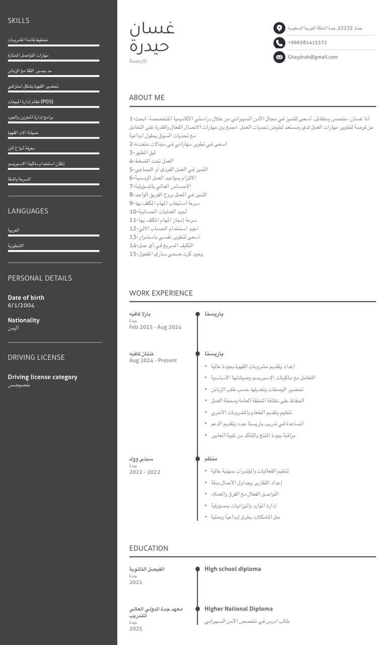 أنا باريستا ابحث عن عمل في جدة امتلك خبرة أكثر من سنتين في اعداد المشروبات والقهوة المختصة وجميع أنواع القهوة وتنظيف المعدات وامتلك كرت صحي ساري المفعول
