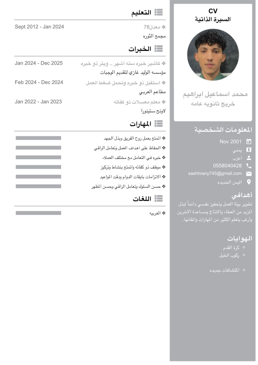 شاب أبلغ 24 عام/ ابحث عن عمل فاهم في الكافيهات ولقهوة الشعبية والمطاعم + كاشير + وايتر + استقبال