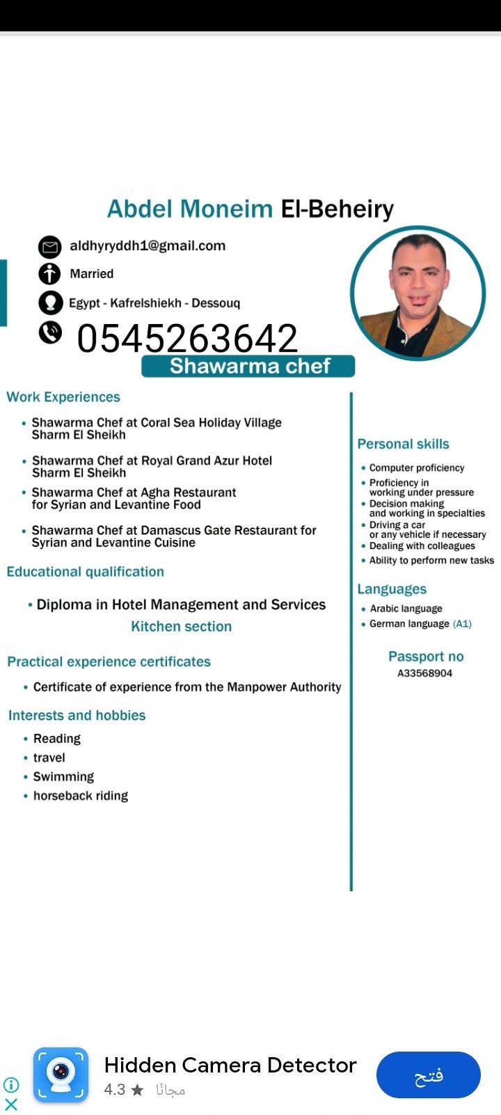 معلم شاورما لحم ودجاج خبرة أكثر من 10 سنوات خريج سياحة وفندقه متواجد في جدة ابحث عن عمل به نقل كفالة