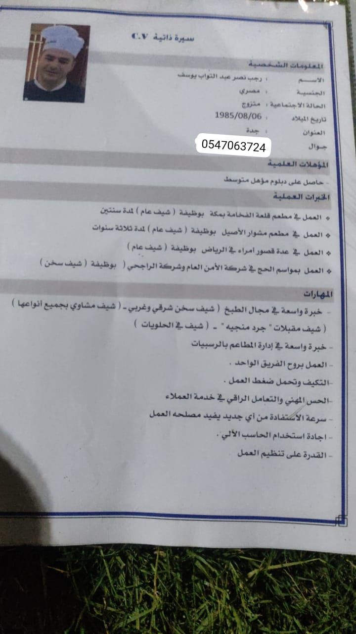 شيف سخن أساسي شيف عمومي عملت ادارة مطاعم في مكة والرياض وشيف مشاوي ومقبلات وحلا واشتغلت في عدة قصور أمراء وشيوخ في الرياض