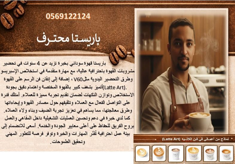 باريستا قهوة مختصه خبرة أكثر من 4 سنوات