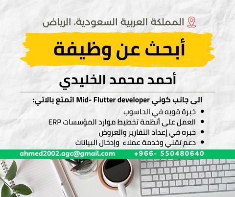 أحمد محمد يمني الجنسية 24 سنة، عندي شهادة دبلوم عالي 3 سنوات في تقنية المعلومات خبرة في العمل على الأنظمة المحاسبية لادخال البيانات وبرامج أوفيس لاعداد تقارير وعروض تقديمية وعندي قدرة في ابتكار حلول تقنية لتسريع العمل والانجاز. أيضا اعمل كمطور تطبيقات ومواقع تعريفية
