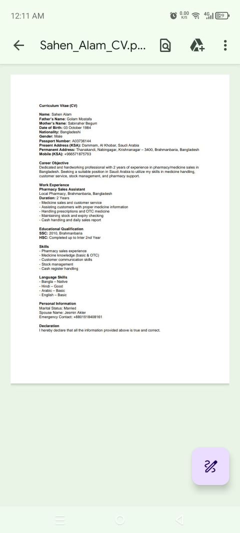 Bangladesh. shahen alam medesine farmaci sels man 4 year experience
