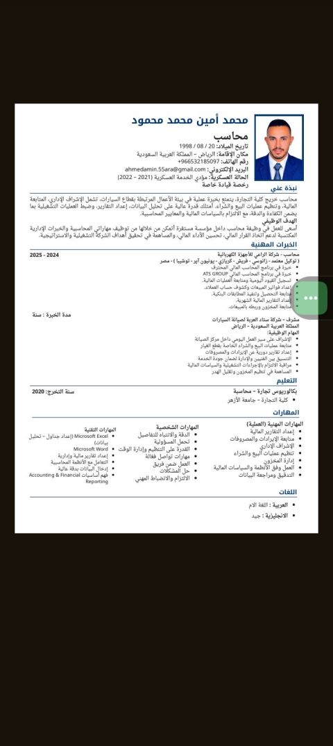 محاسب مالي مصري عمري 27 سنة خبرة سنتين أجيد اعداد القيود اليوميه واعداد التقراير المالية ومتابعه الايرادات والمصروفات والعملاء والموردين وأجيد التعامل معا الأنظمة المحاسبية
