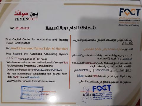 Located in Riyadh and ready to work immediately anywhere in Saudi Arabia. I have completed courses in accounting and the Onyx Abro system from YemenSoft Systems, and hold a bachelor's degree in cybersecurity. I have a valid residency permit and driver's license