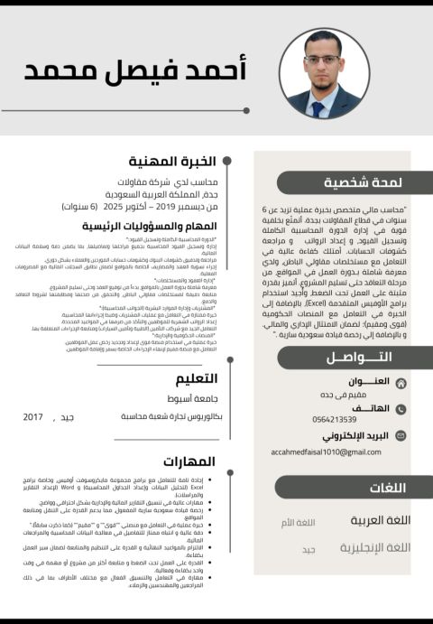 كاشير ومدخل بيانات ذو خبرة عملية في استقبال العملاء، التعامل مع المدفوعات وخدمة العملاء، اكتسبت مهارات في استخدام نضام نقاط البيع (pos) والعمل ضمن فريق، اعمل في قطاع التجارة منذ 9 سنوات (بيع وشراء) أسعى لتطوير مهاراتي وتقديم أفضل خدمة تواصل معنا لتطلع على السيفي الخاص بي