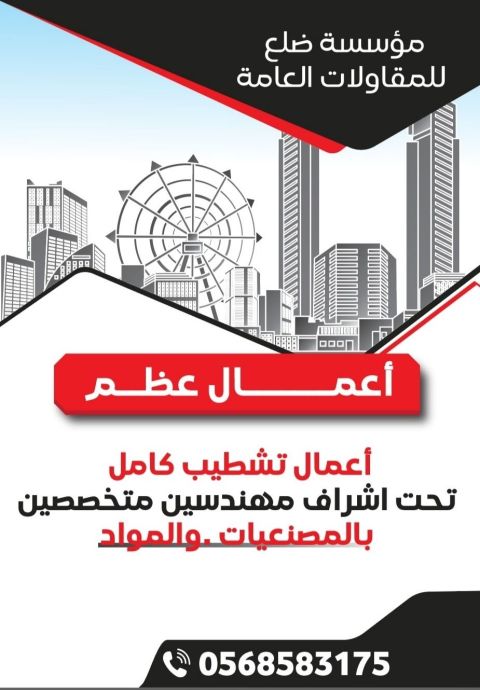 نعمل في كافة أعمال المقاولات الهناجر استراحات حظائر - دواجن محطات وقود فلل عمارات قصور - أفراح مولات مجمعات تجاريه مدارس أسوار شبك تشطيب ترميم دهانات خزانات ازفلت صبات أرضيات تسليم مفتاح عظم - بالمواد وغيرها مكة جدة الرياض المنطقة الشرقية للتواصل