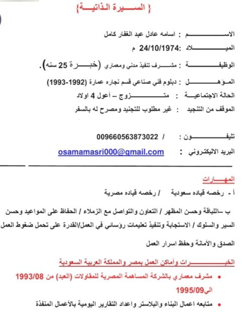 مشرف عام معماري وانشائي خبرة 25 عام استلام وتسليم جميع الأعمال الانشائية والمعمارية والتسليم في الموعد المحدد خبرة 10 سنوات بالمملكة العربية السعودية و4 سنوات في الأردن و11 عام بجمهورية مصر العربية