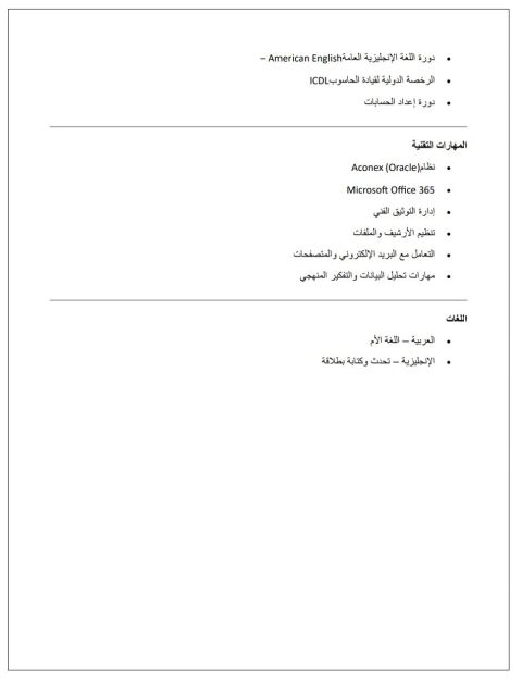 خبرة والمام كامل بالإدارة الماليه والتنفيذية وإدارة الحسابات والموارد البشرية وخبرة في قطاعات الجملة والتجزئة والهايبرات والسوبرات وأيضا خبرة في مجال المقاولات وأعمال الخشب والاحتفالات ولدي لغة انجليزية ورخصة قيادة وسيارة والقدرة على تطوير بيئة العمل إن شاء الله