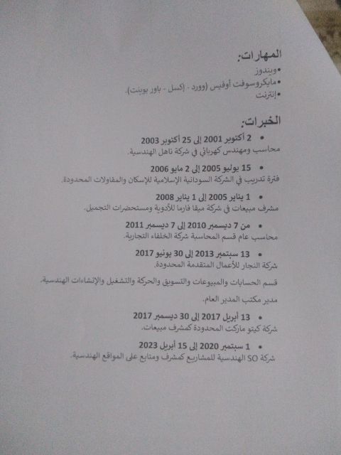 أنا ايهاب مختار بخيت لدي خبرة في مجال الاشراف والمتابعة والمشتريات والمقاولات وحسابات المواقع