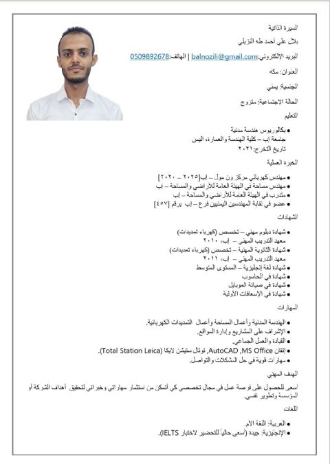 عمل في ملابس خبرة خمس سنين الإقامة ساري سنة الجنسية يمني