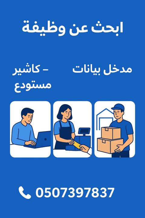 ابحث عن وظيفة (مدخل بيانات - كاشير - أمين مستودع) خبرة جيدة في التعامل مع الأنظمة، وادخال البيانات بدقة، واستلام وتسليم البضائع، وتنظيم المخزون. الالتزام في العمل وقدرة عالية على التواصل والعمل تحت الضغط. للتواصل