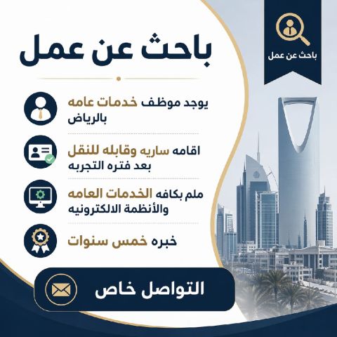 أنا عامل خدمات عامة ابحث عن عمل في أي مكتب أجيد جميع خدمات ناجز قوى تصاريح حساب مواطن والضمان نقل كفالة كافة خدمات العامة