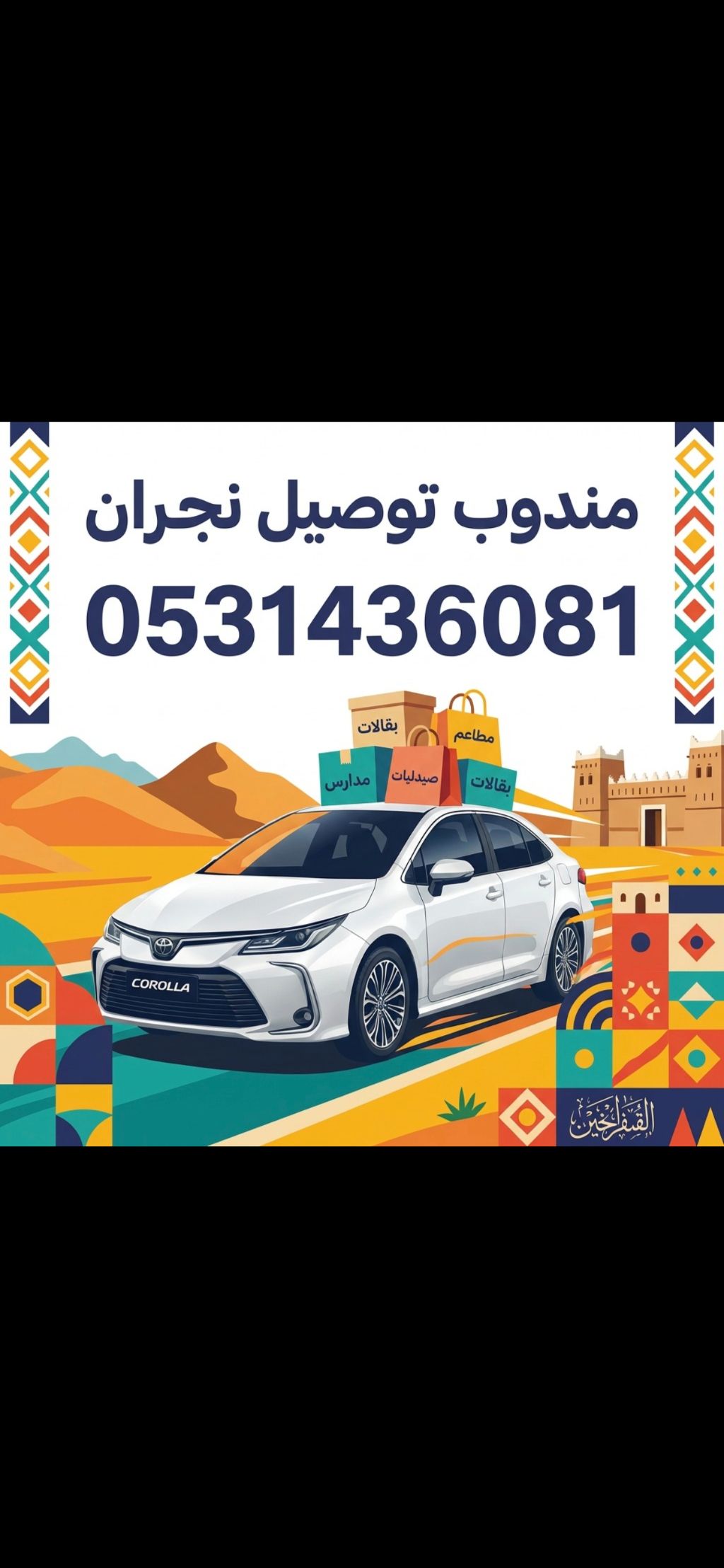 معكم مندوب توصيل داخل نجران وخارج نجران بأسعار مناسبة وكل أمانة واحترام اتصل نصل أبو مبارك