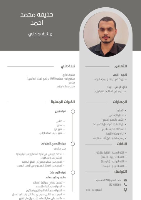 ابحث عن عمل. أتحدث الانجليزية والهندية والأردية، ولدي خبرة متنوعة في الإدارة والاشراف. أجيد أداء مهام متعددة داخل المؤسسة أو الشركة نفسها. أتمتع بروح الفريق، وأتمتع بصفات قيادية قوية، وأتحمل الضغوط، وأتعلم بسرعة، وأتكيف مع بيئة العمل