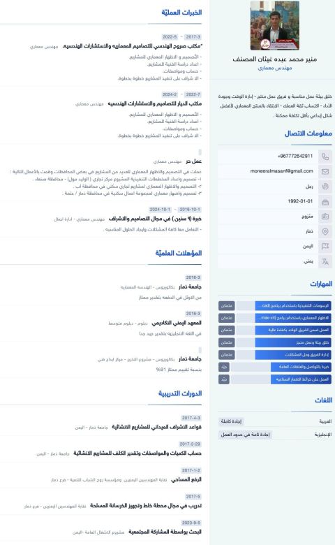 ابحث عن عمل مهندس معماري موجود في السعودية خبرة 7 سنوات متاح نقل كفالة موجود رخصة قيادة