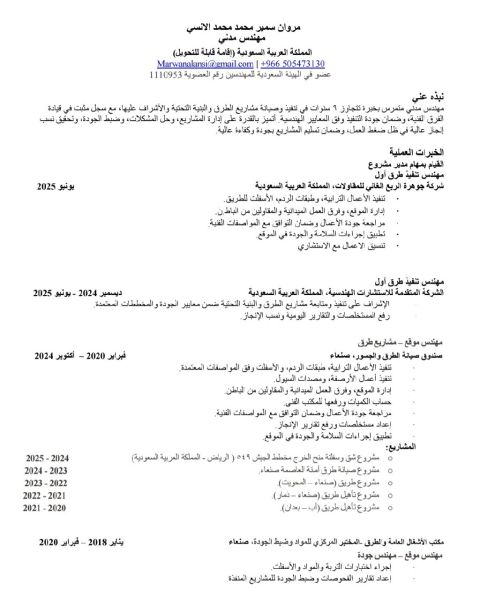 مهندس مدني طرق واسفلت موقع خبرة تتجاوز 9 سنوات في إدارة وتنفيذ أعمال الطرقات والاسفلت والبنية التحتية وطبقات الرصف والاشراف عليها وادارة الموقع والمعدات وأعمال الصيانة مسجل لدى الهيئة السعودية للمهندسين إقامة سارية قابلة للتحويل ورخصة قيادة متواجد في الرياض قابل للعمل في أي منطقة