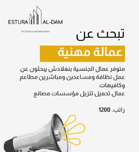 موجود عمال بنقال للتنازل الفوري جاهزة للعمل بالمطاعم والكافيهات والمصانع والمولات شكل مقبول وصغار بالعمر وإقامة سارية مع التجربة أسبوع رواتب تبدأ من 1200 وامكانية استبدال أي عامل خلال فترة التجربة