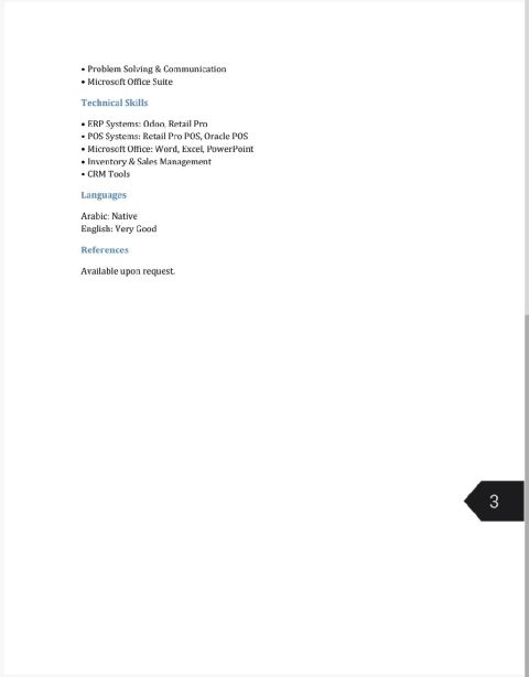 محترف في مجال خدمة العملاء والمحاسبة والمبيعات بخبرة تتجاوز 5 سنوات، أتمتع بمهارات عالية في التواصل، العمل مع العملاء، إدارة فرق العمل، واستخدام برامج الكمبيوتر المكتبية. أسعى للانضمام الى بيئة عمل محفزة تساهم في تطوير مهاراتي ومهارات الفريق لتحقيق أهداف الشركة
