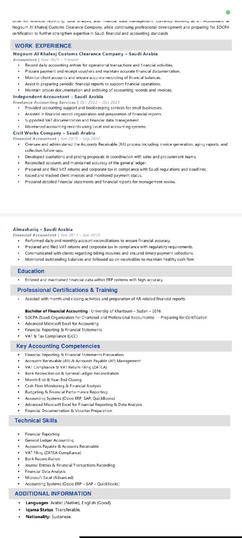 Omar Mahmoud Kulaib Job Seeker - Barista/ Cashier/ Customer Service I am currently seeking a job opportunity in Riyadh. I am a resident with a valid Iqama and ready to join immediately. Qualifications & Experience Certified Barista (Intermediate Level) from the Specialty Coffee Association (SCA) Skilled in coffee preparation (espresso, milk steaming, and equipment handling) Previous